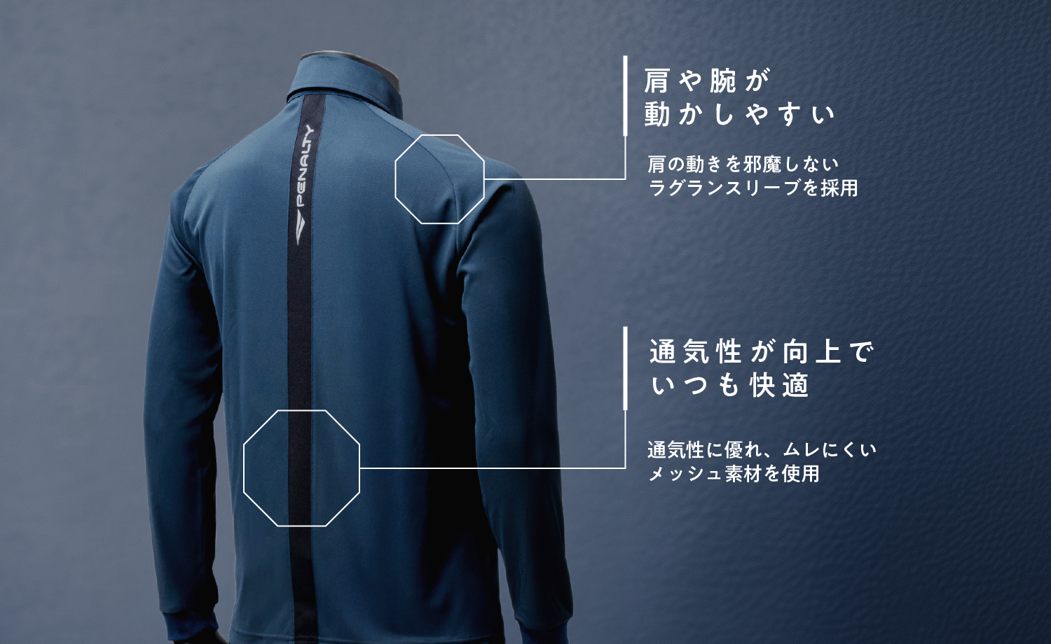 ラグラン袖により、肩と腕の可動域が広がり作業性アップ。